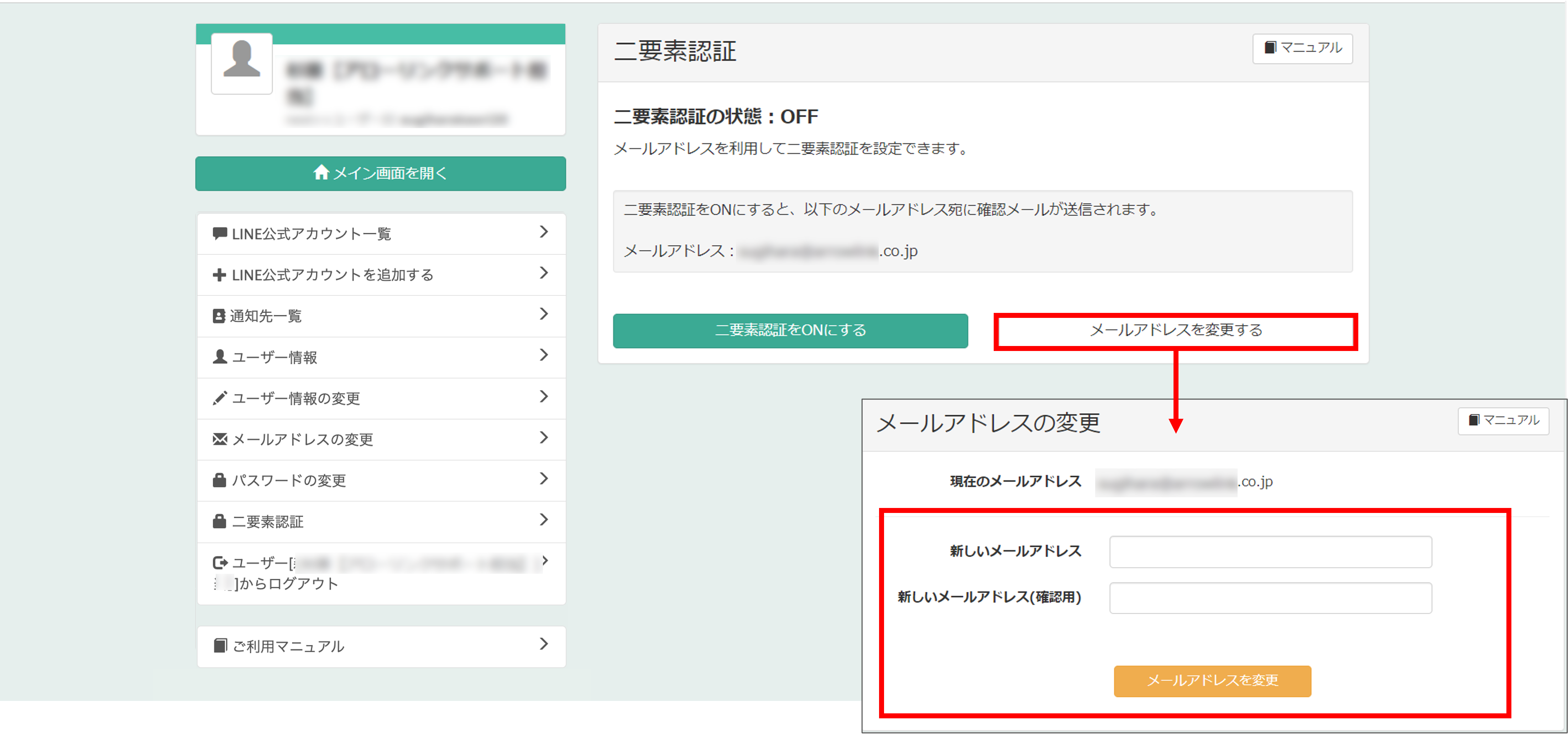 ログインが完了しました。必要に応じてメールアドレスの変更や復旧キーの再取得を行ってください。