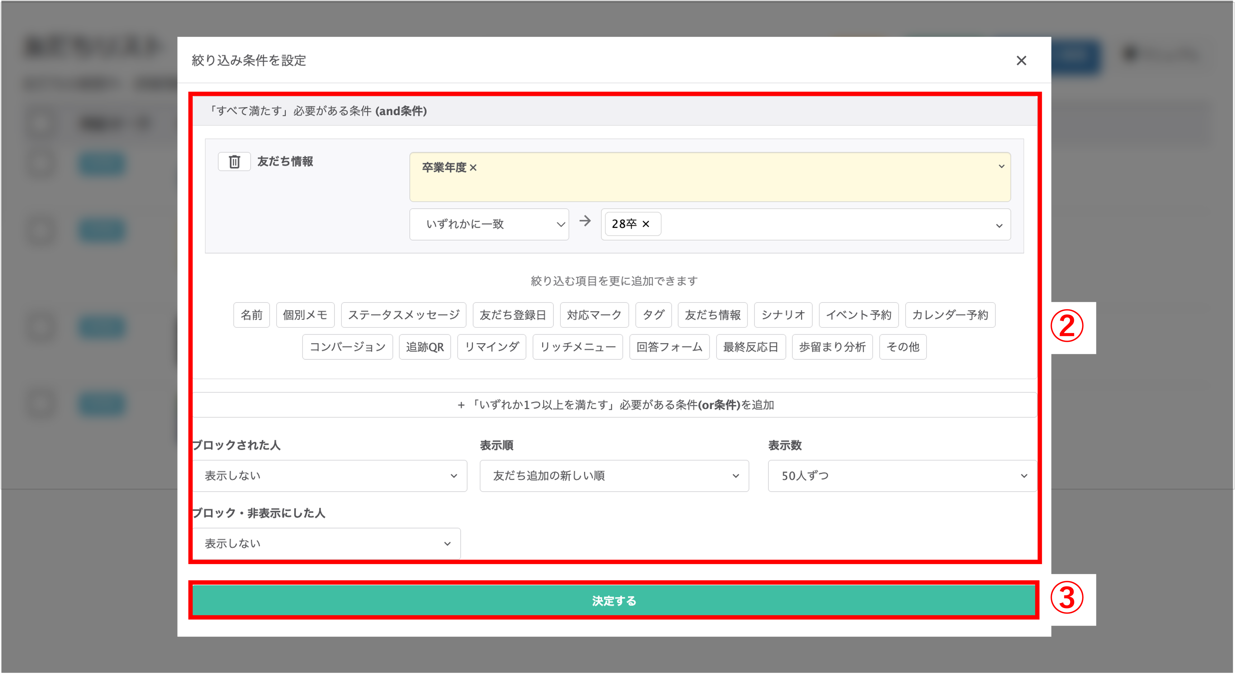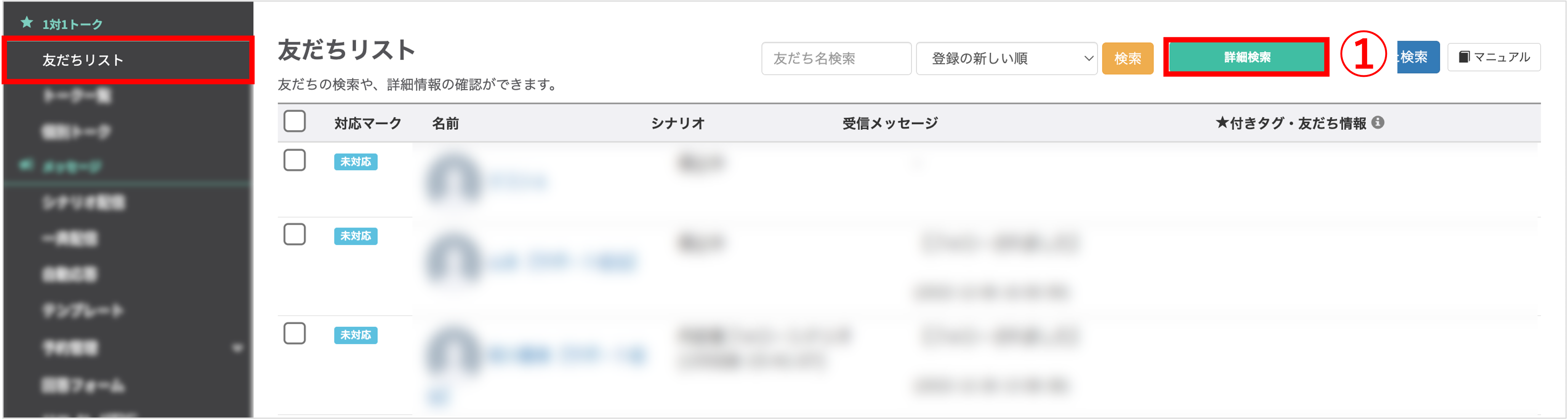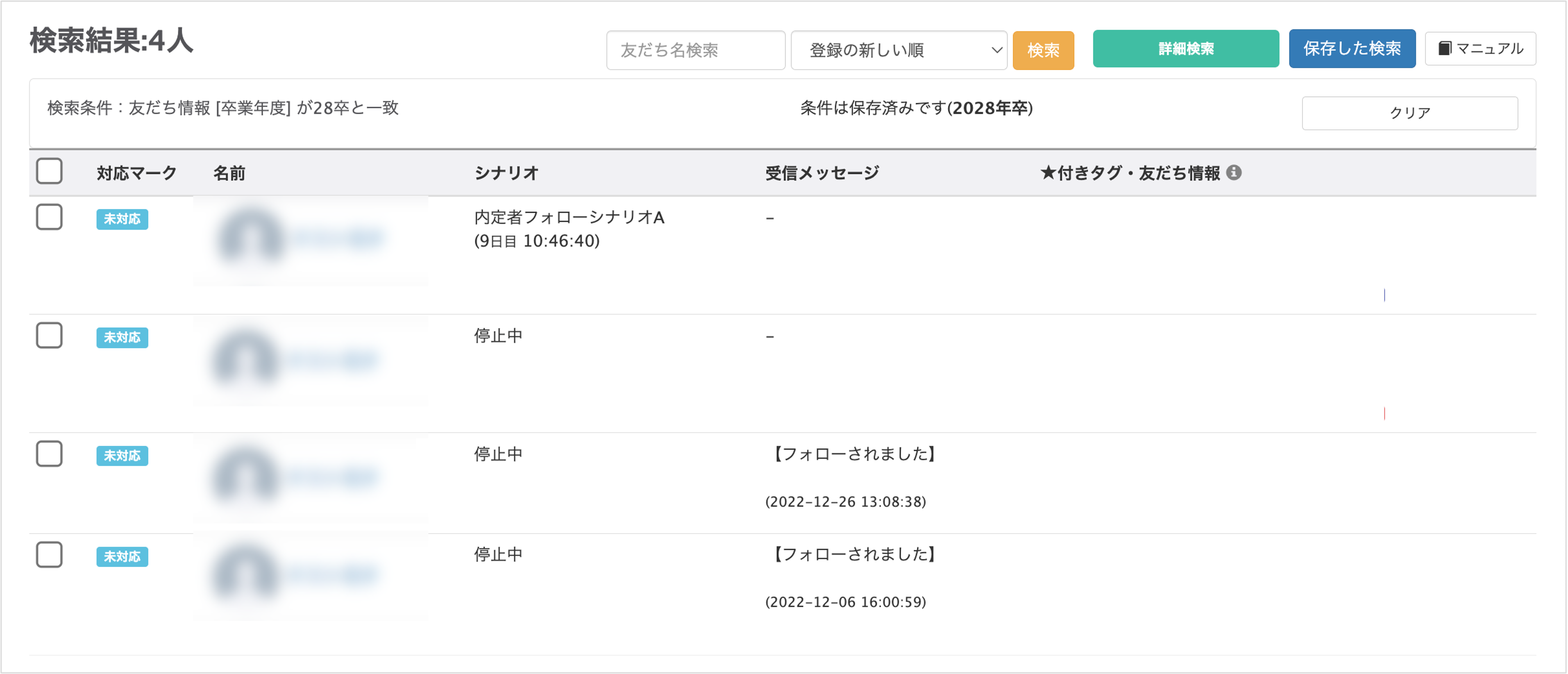 ★カスタム検索管理とは、友だちの絞り込み検索条件を保存・分類管理を行うことができる機能です。よく使う友だちの絞り込み条件を保存しておくことで毎回の検索の手間を省くことができます。