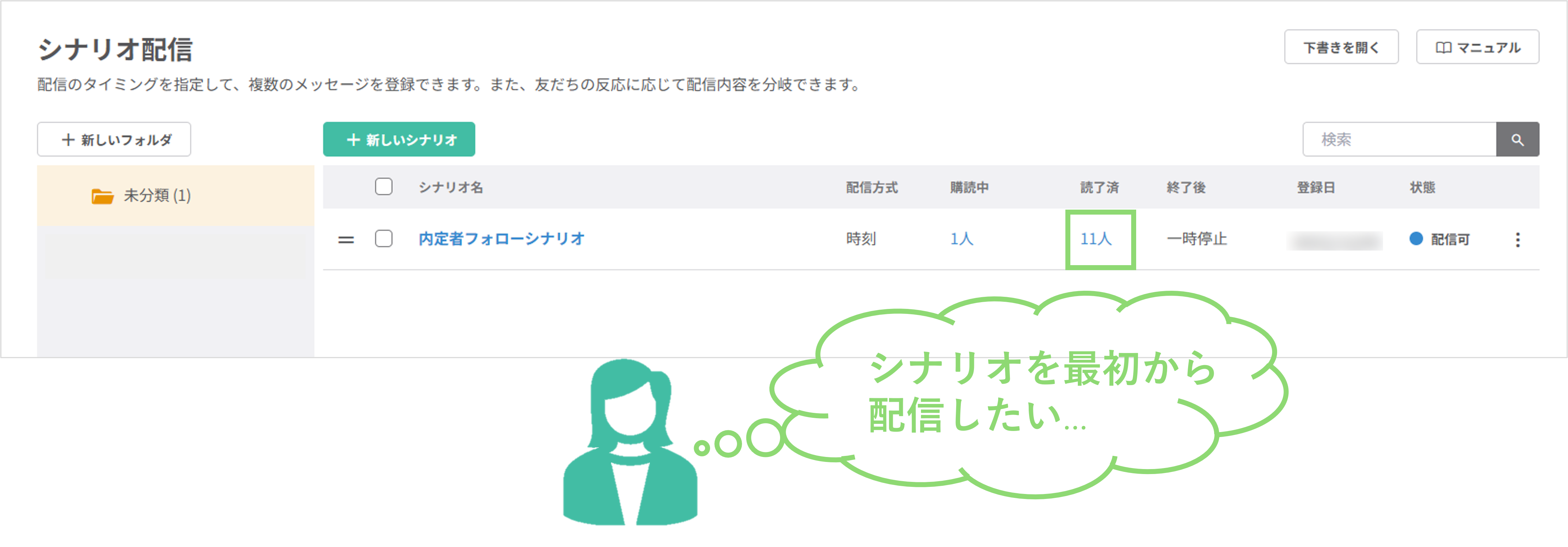 『読了済み』のシナリオ配信をリセット/日時指定操作を行う方法