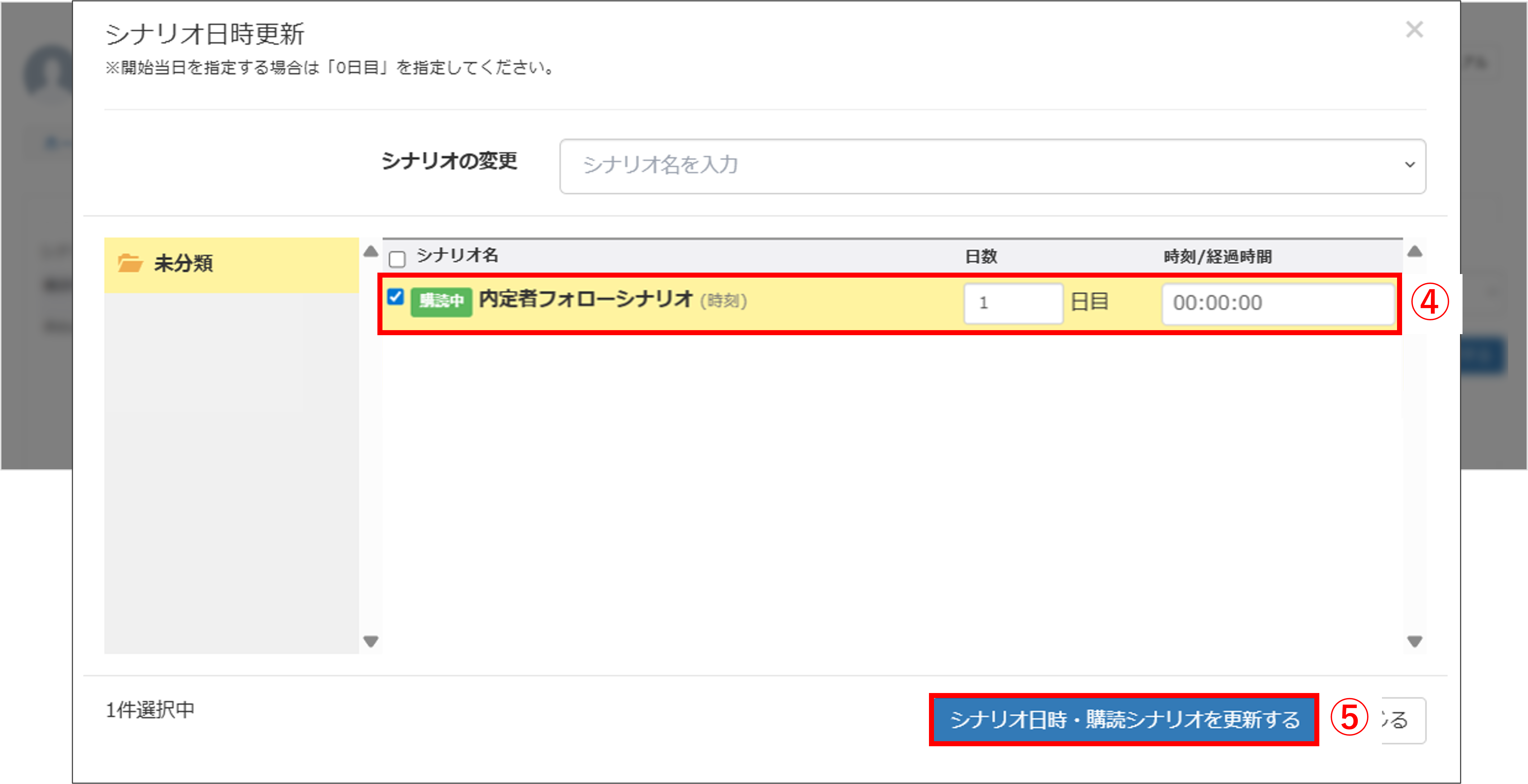⑤〔シナリオ日時・購読シナリオを更新する〕ボタンをクリックして、シナリオ日時操作の完了です。
