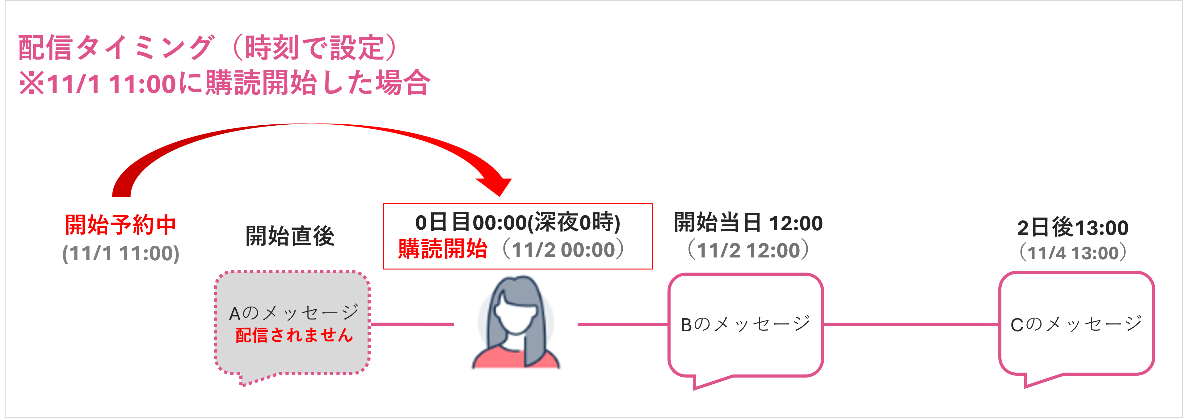 ※今回の場合、シナリオの購読開始時刻は「1日目 12時」となり、それ以降のシナリオメッセージが配信されます。