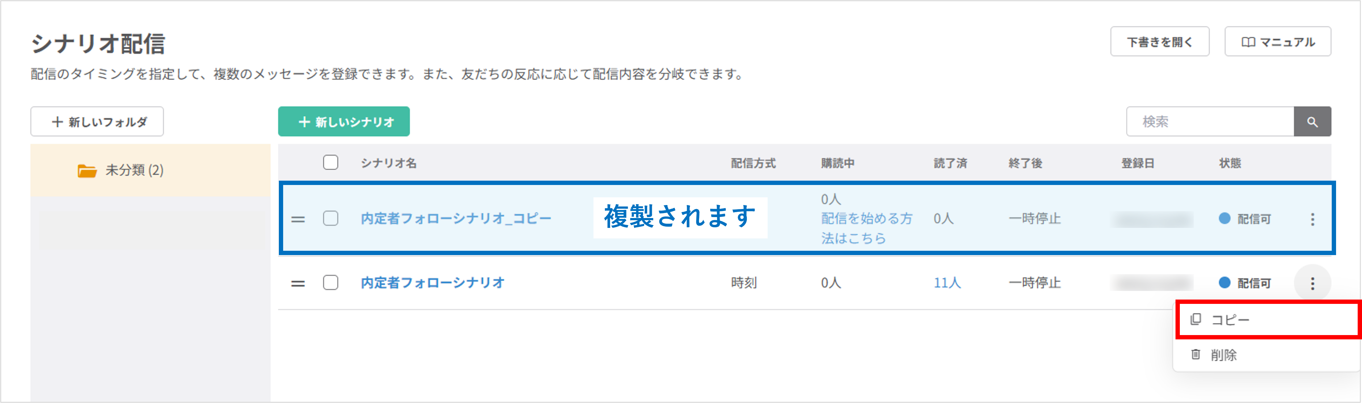 ・対応③:同じ内容のシナリオを複製して配信設定を行う