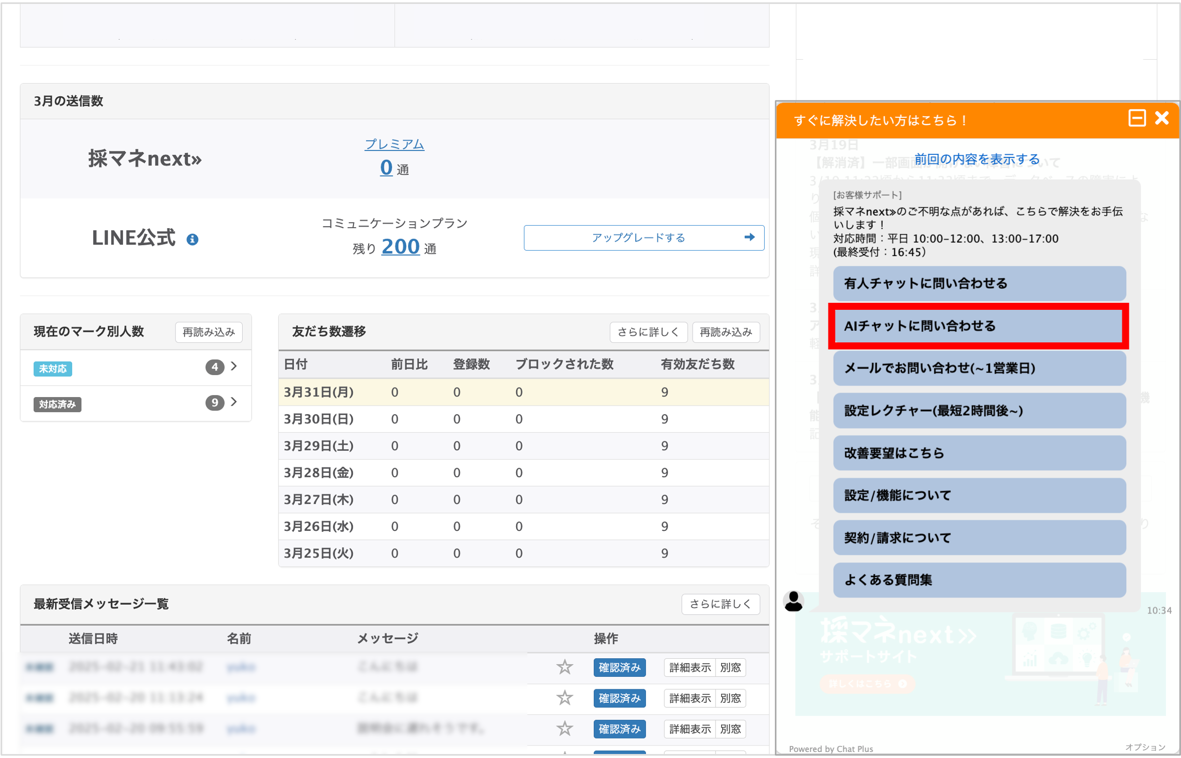 AIチャットボットは採マネnext≫に関する疑問を解決するために最適な答えをご提案するための機能です。