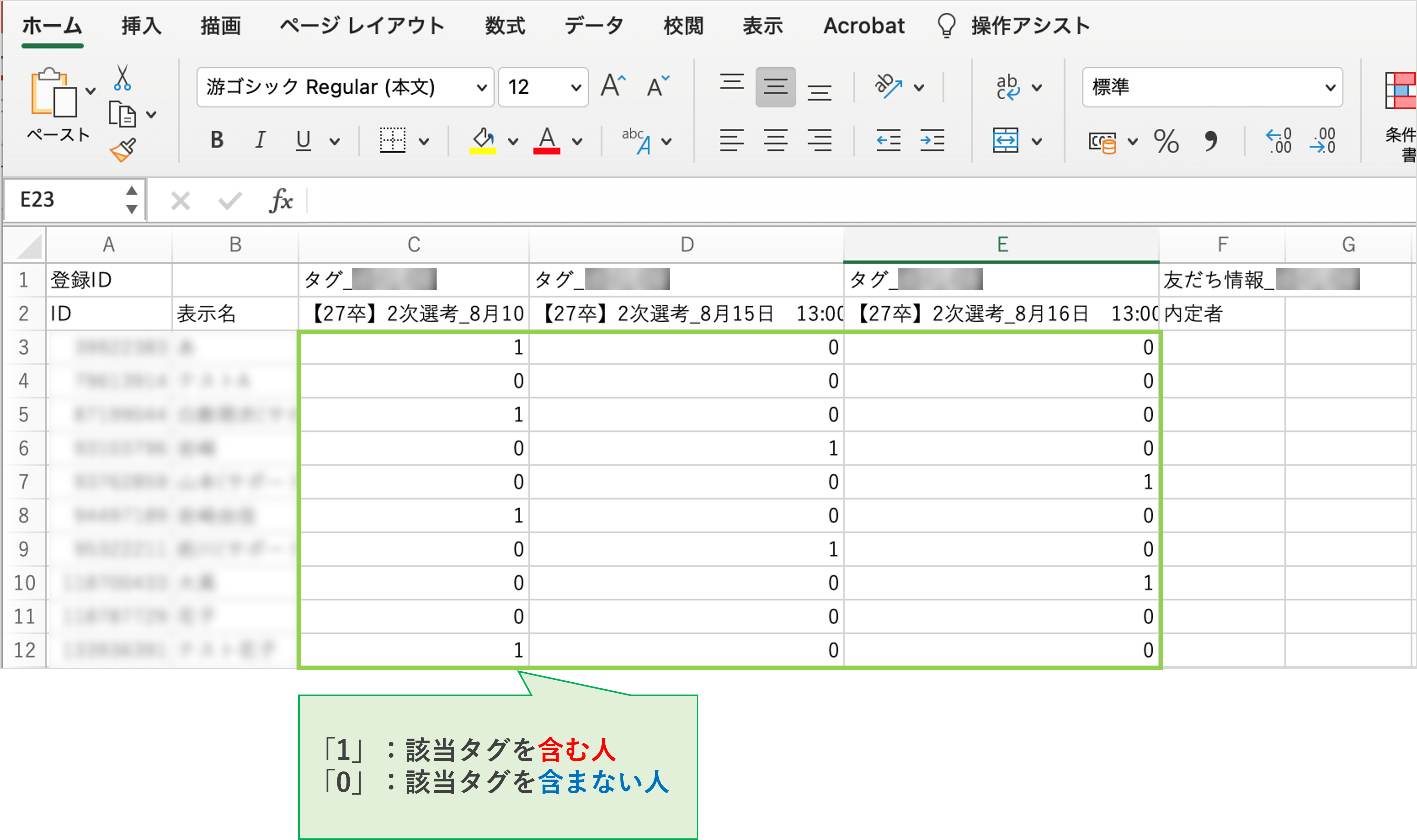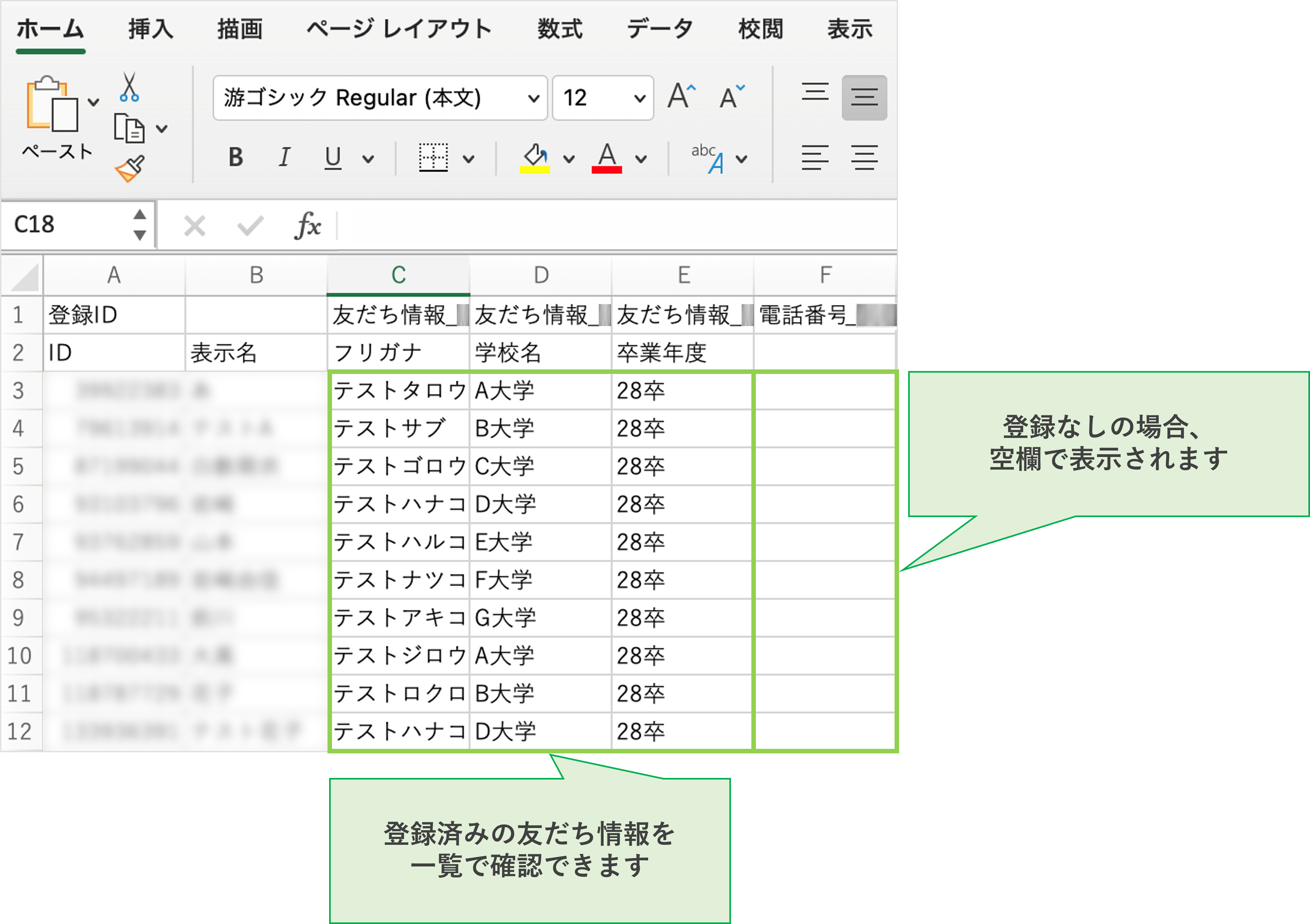 <友だち情報でエクスポートした場合のイメージ>