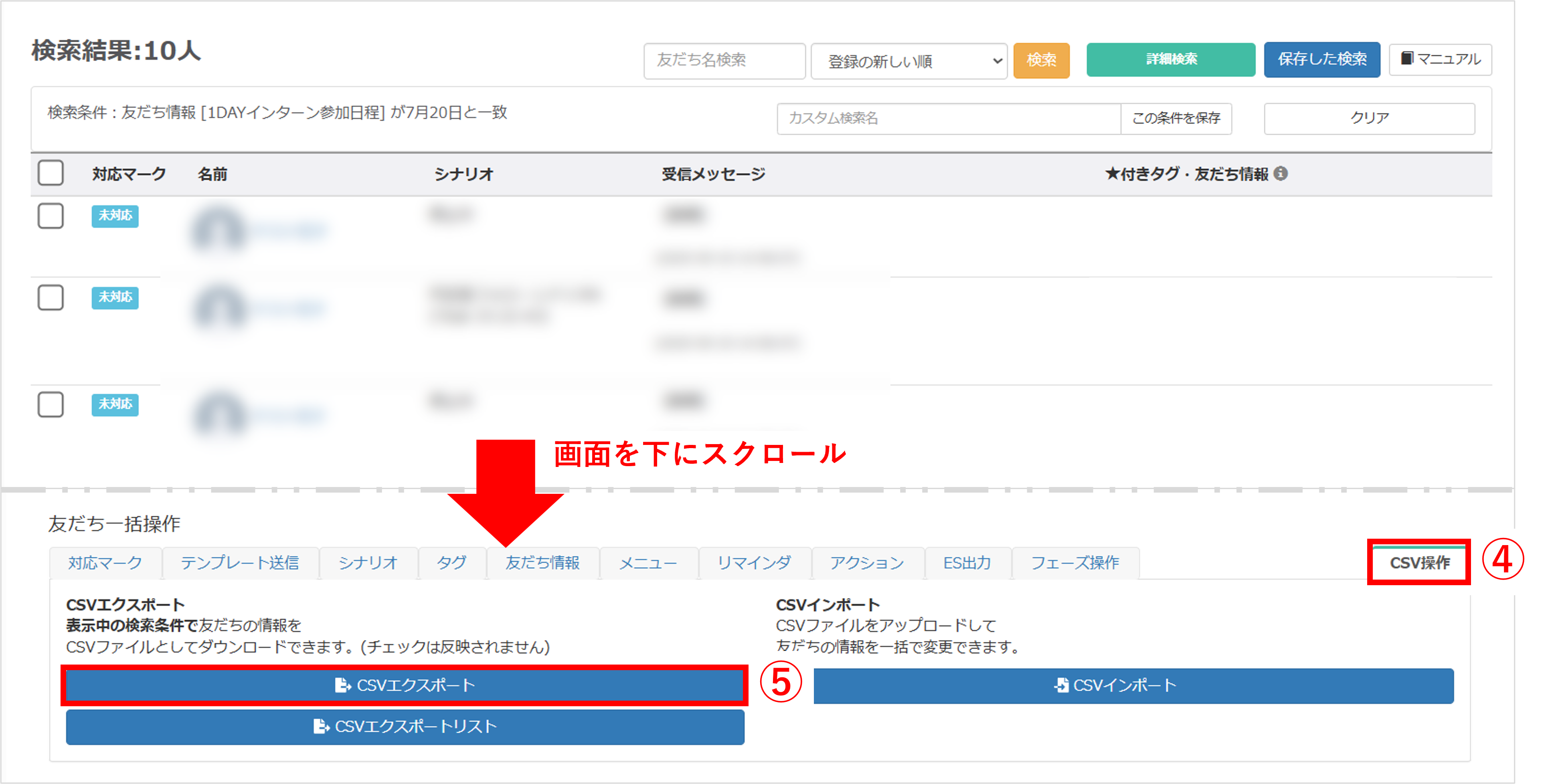 ⑤〔CSVエクスポート〕ボタンをクリックします。