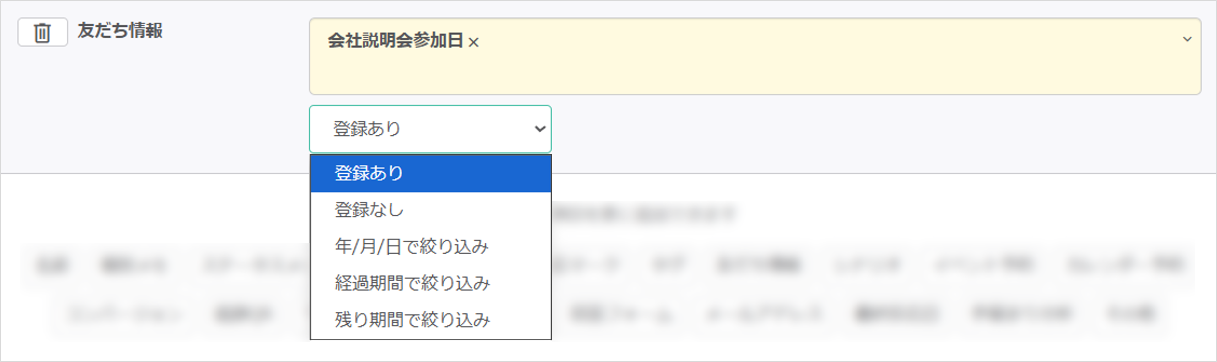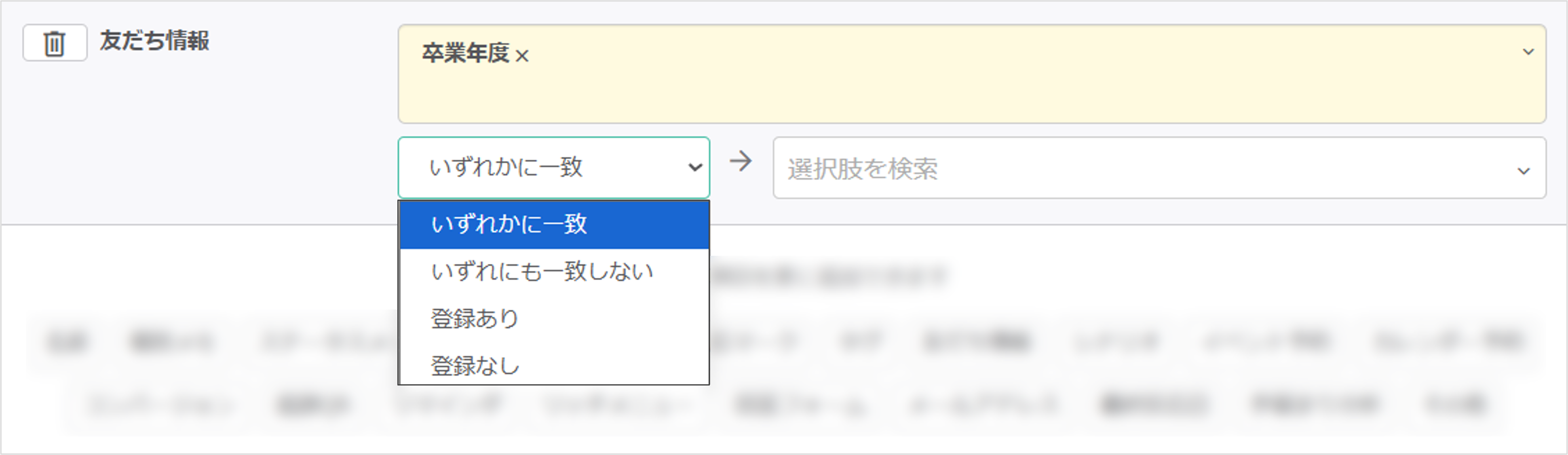 【登録あり】:いずれかの選択肢と一致する友だちを検索します。