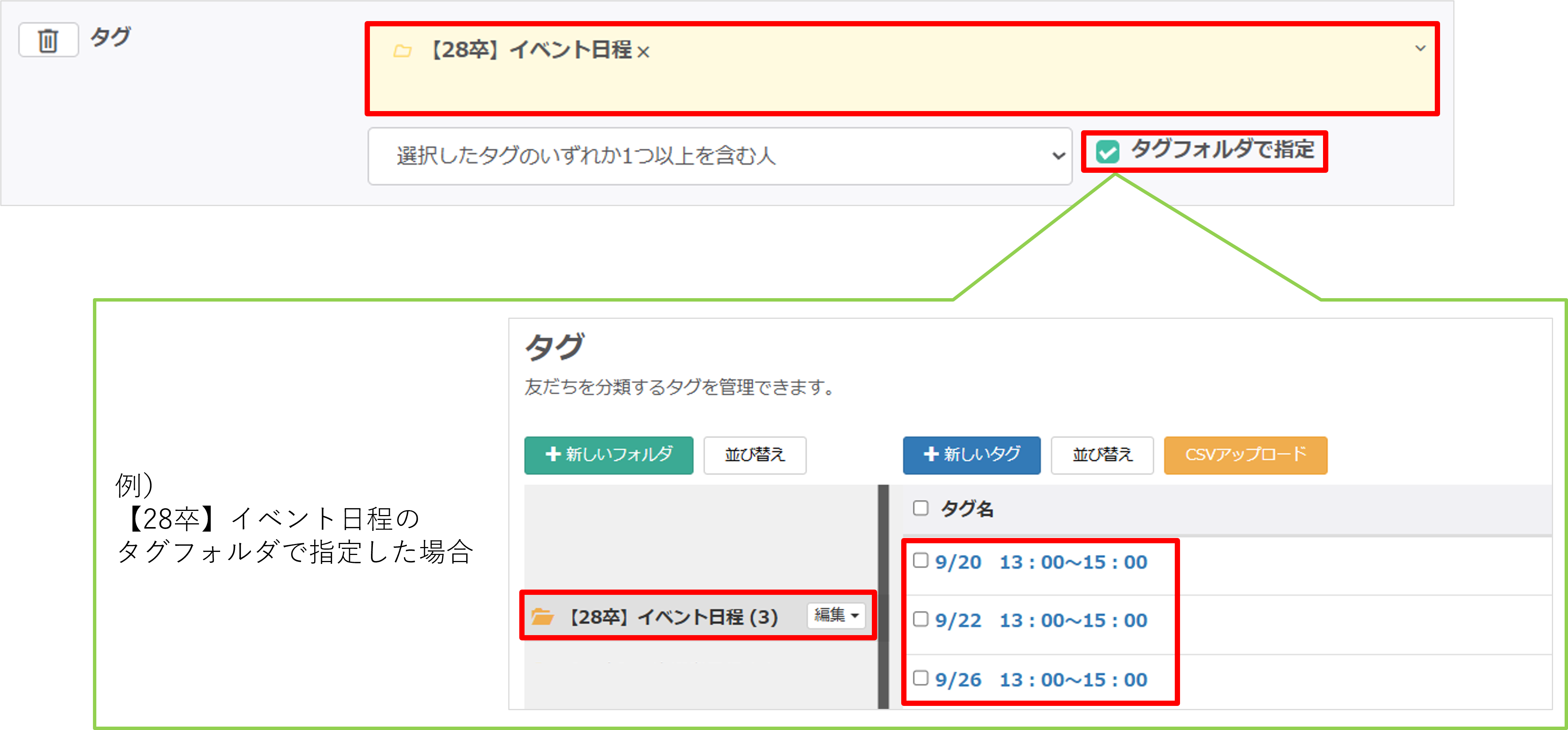 【登録あり】:指定した友だち情報で登録がある場合に検索されます。