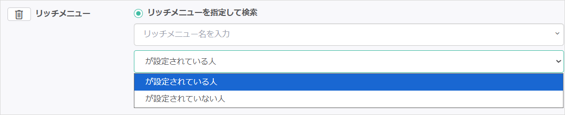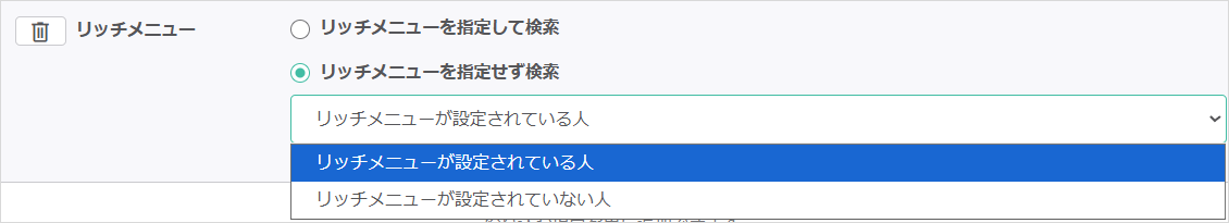 リッチメニューを指定して検索を選択する場合、該当のリッチメニューに対して以下のいずれかを指定して検索できます。