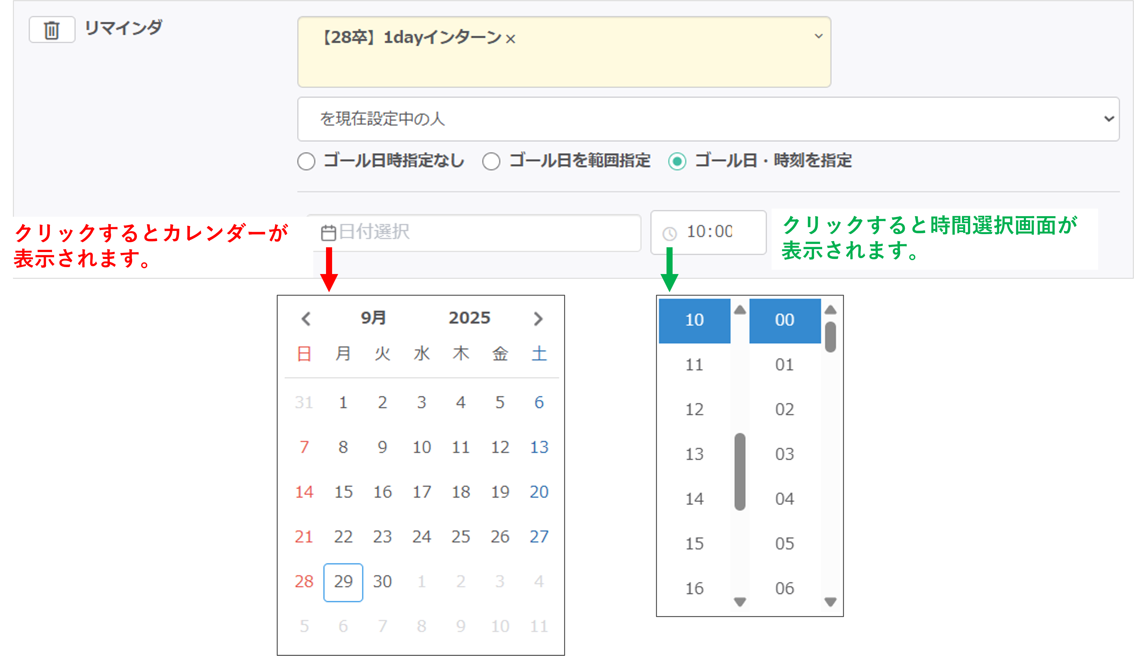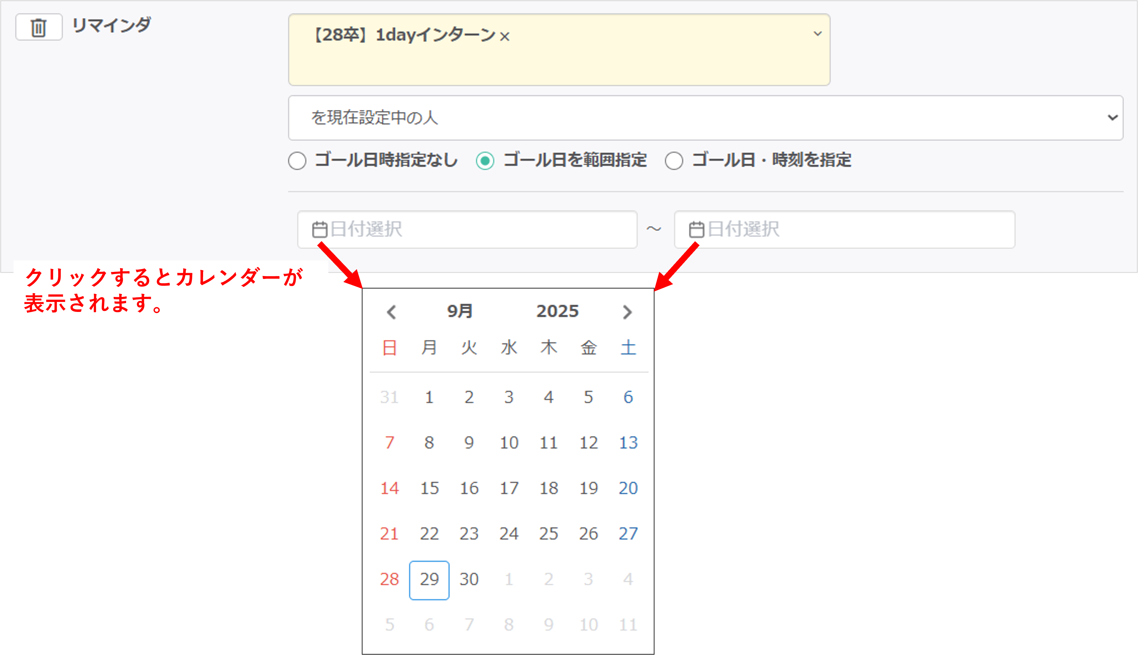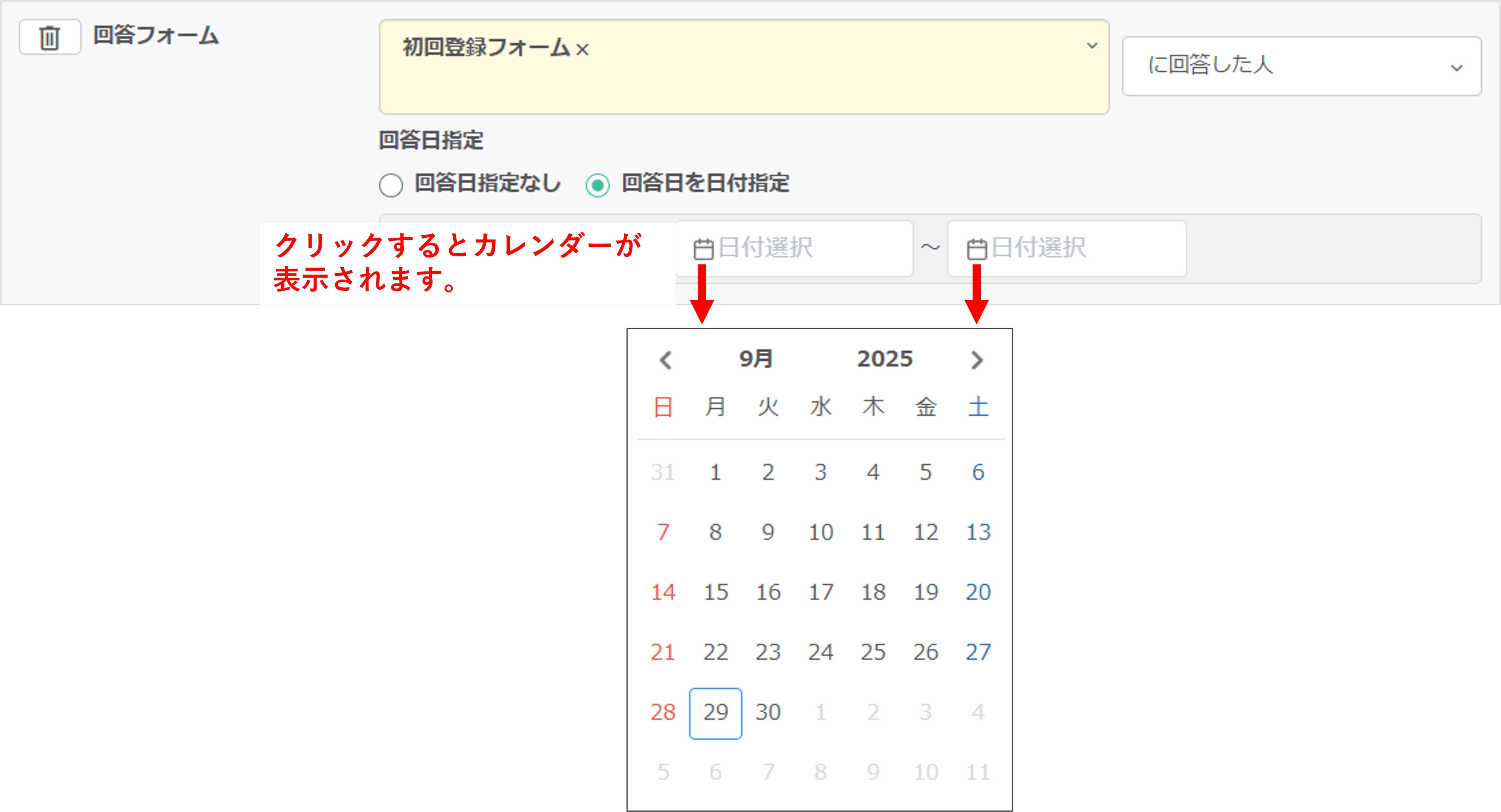 【開始日付】と【終了日付】をカレンダーから設定できます。