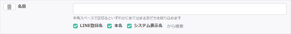 LINE登録名、本名、システム表示名のいずれかの情報を入力して検索できます。
