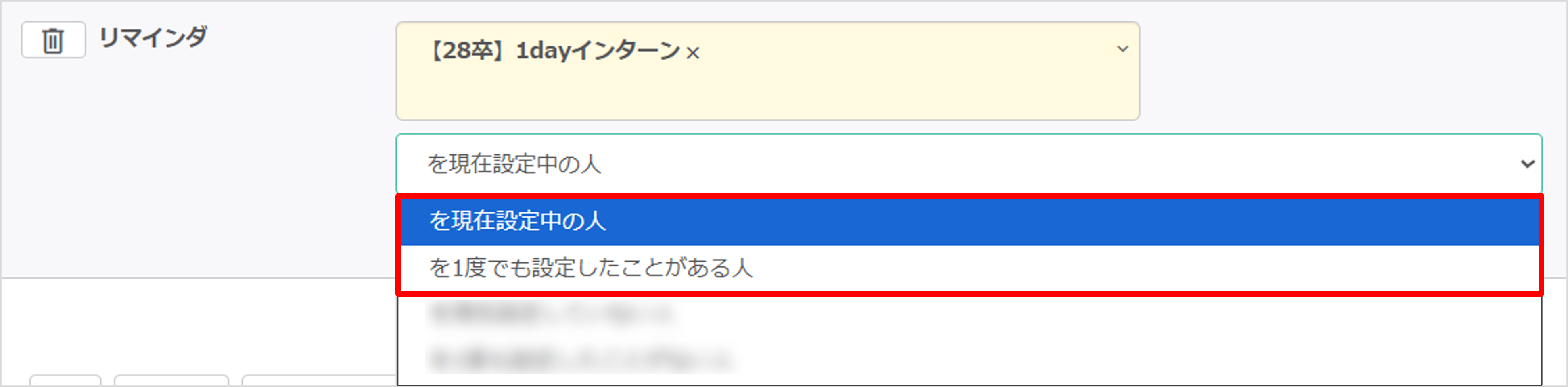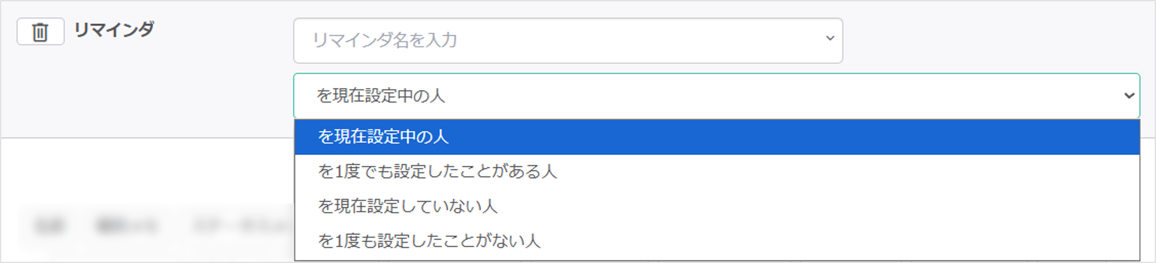 また、「を現在設定中の人」または「を1度でも設定したことがある人」を選択した場合、以下の条件を指定して検索できます。
