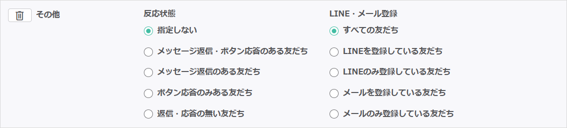 【登録なし】:指定した友だち情報で登録がない場合に検索されます。