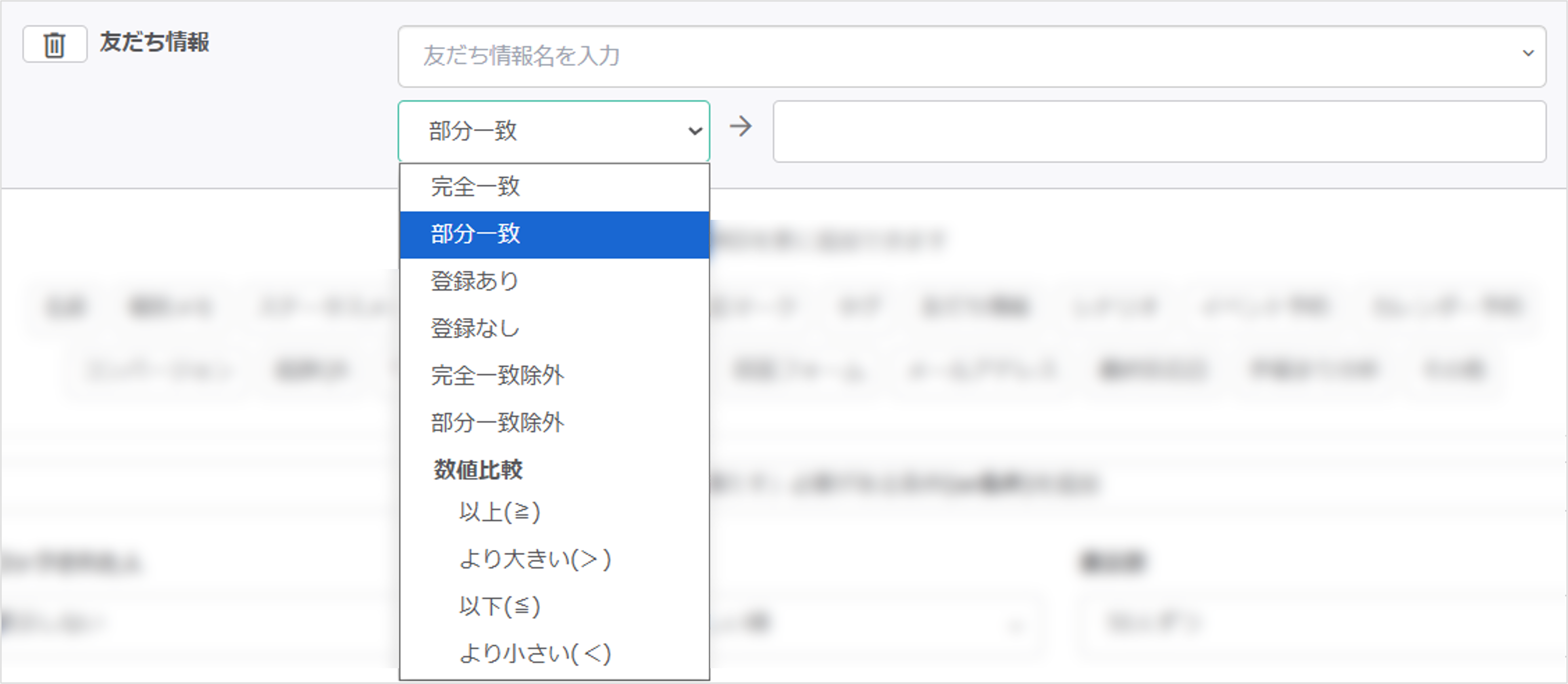 【部分一致】:検索した文字を含んでいる友だち情報が検索されます。