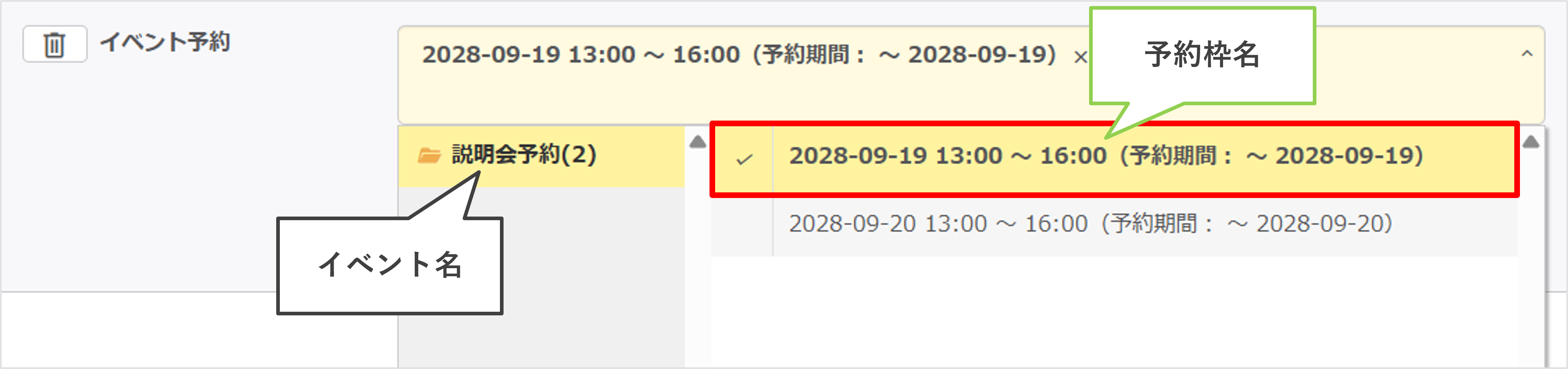予約枠ではなく、イベント名ごとに以下の予約状態、または予約状態を除いた人を検索できます。