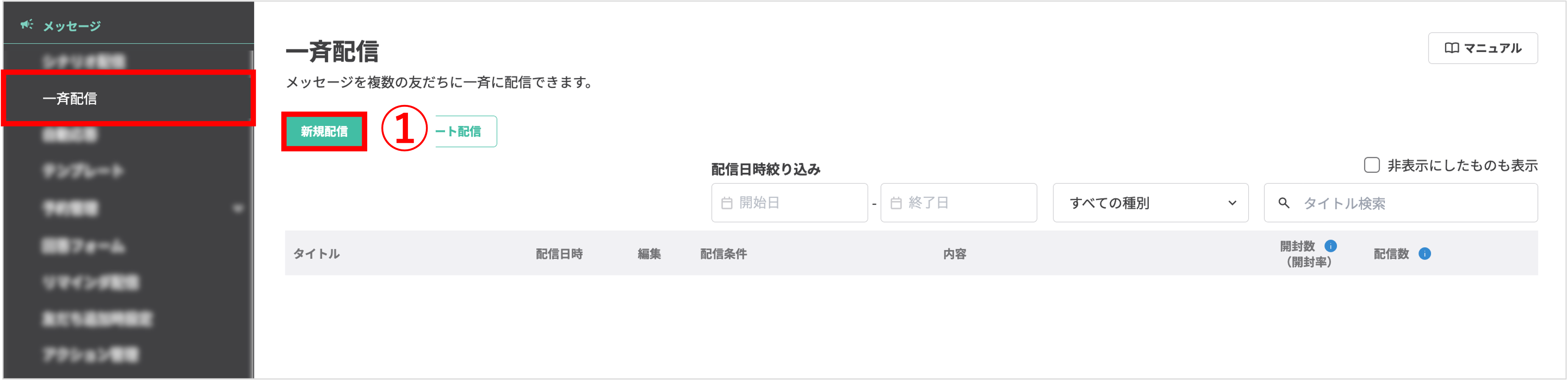 ・取得する:一覧画面の開封数(開封率)からメッセージを閲覧した友だち数を測定できます。