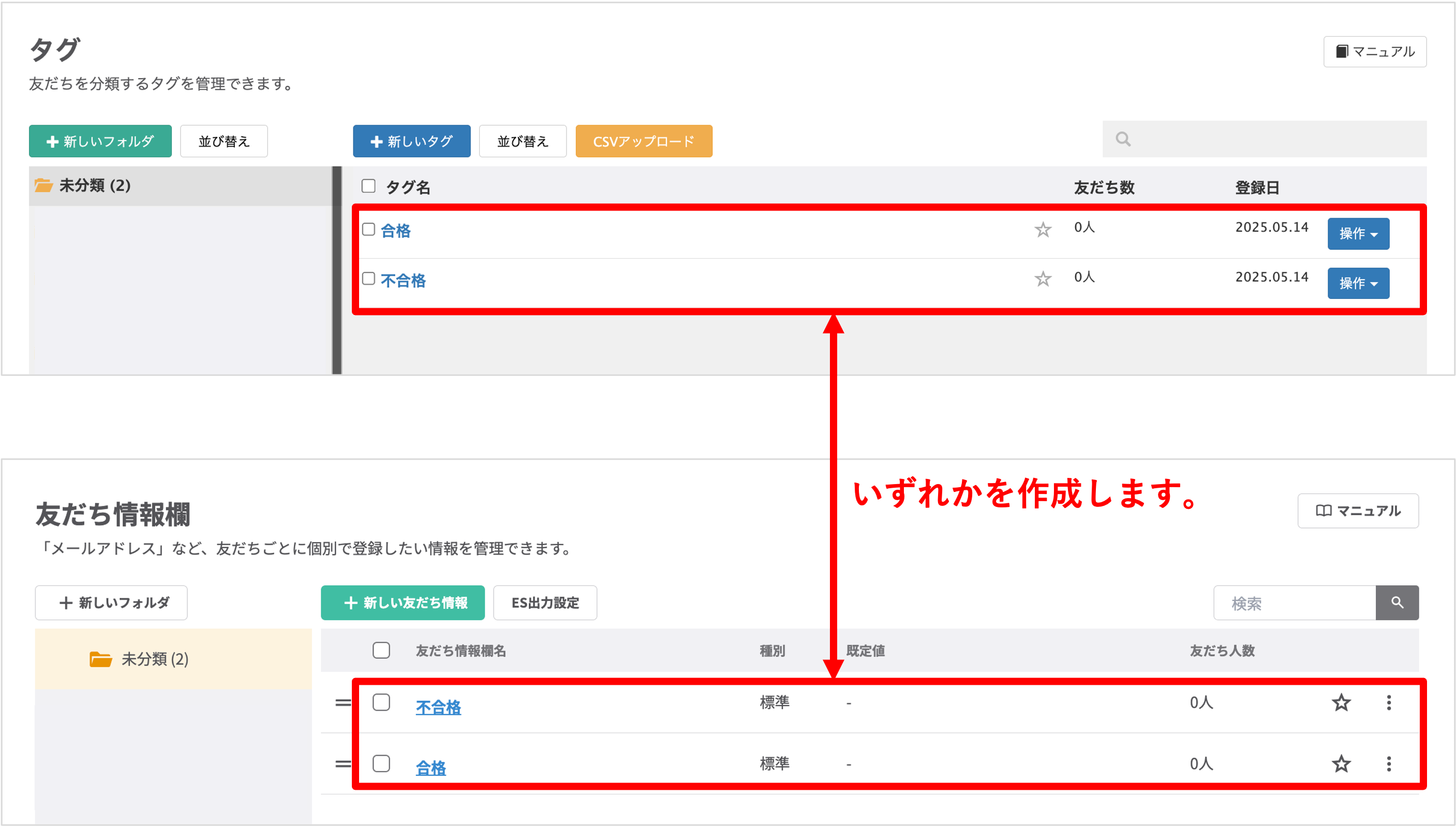 ★送信先を絞り込むためにタグや友だち情報で「合格者」と「不合格者」を分けておく必要があります。