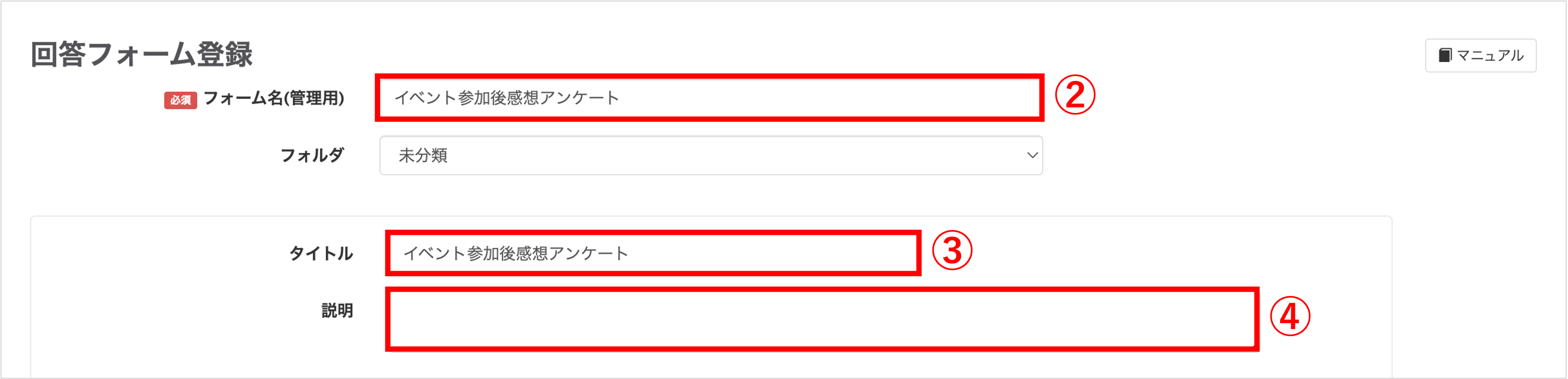 ②『フォーム名』を入力します。(管理用のなので学生側には表示されません)