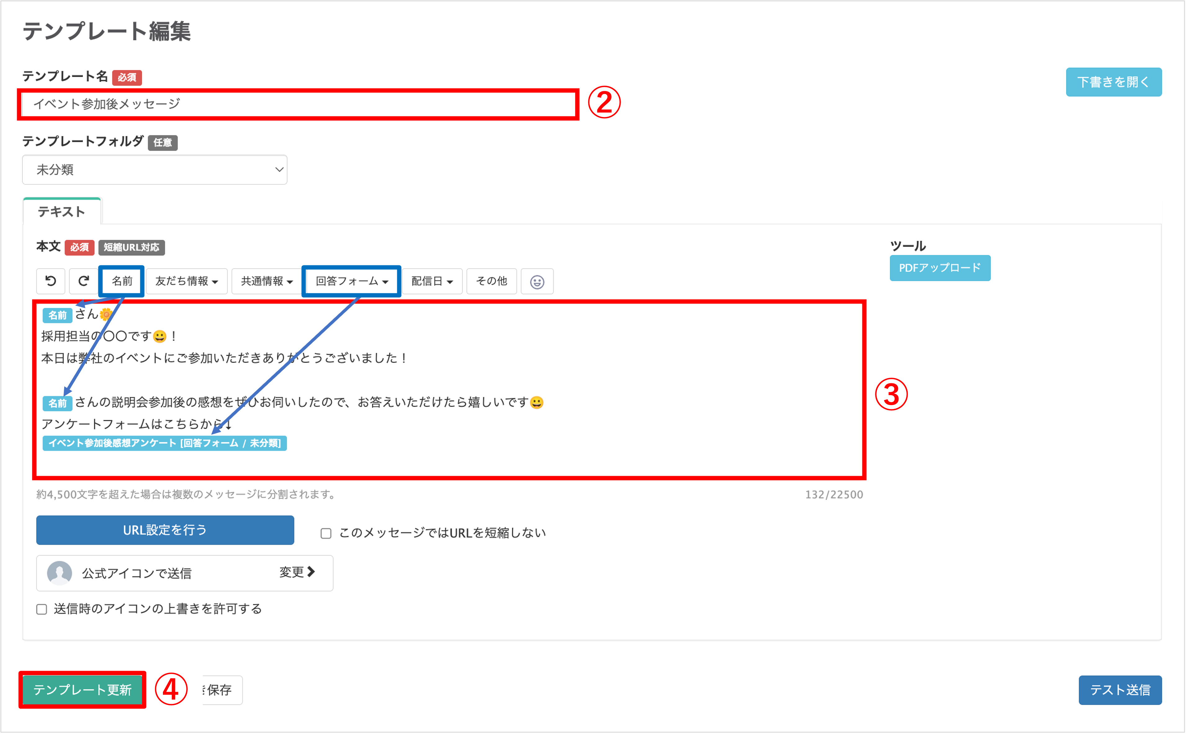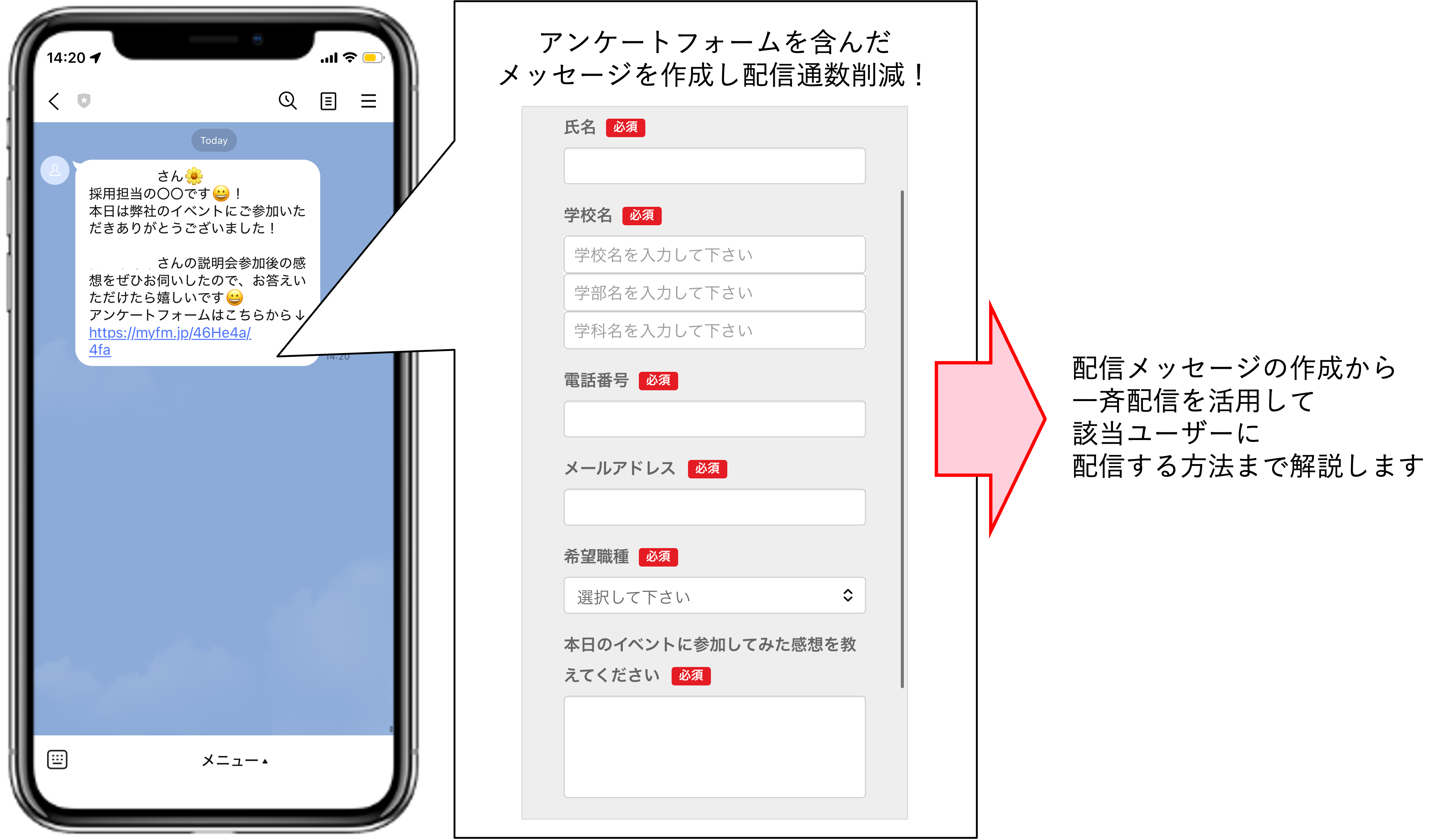 ★作成した回答フォームを含めた配信メッセージを作成します。