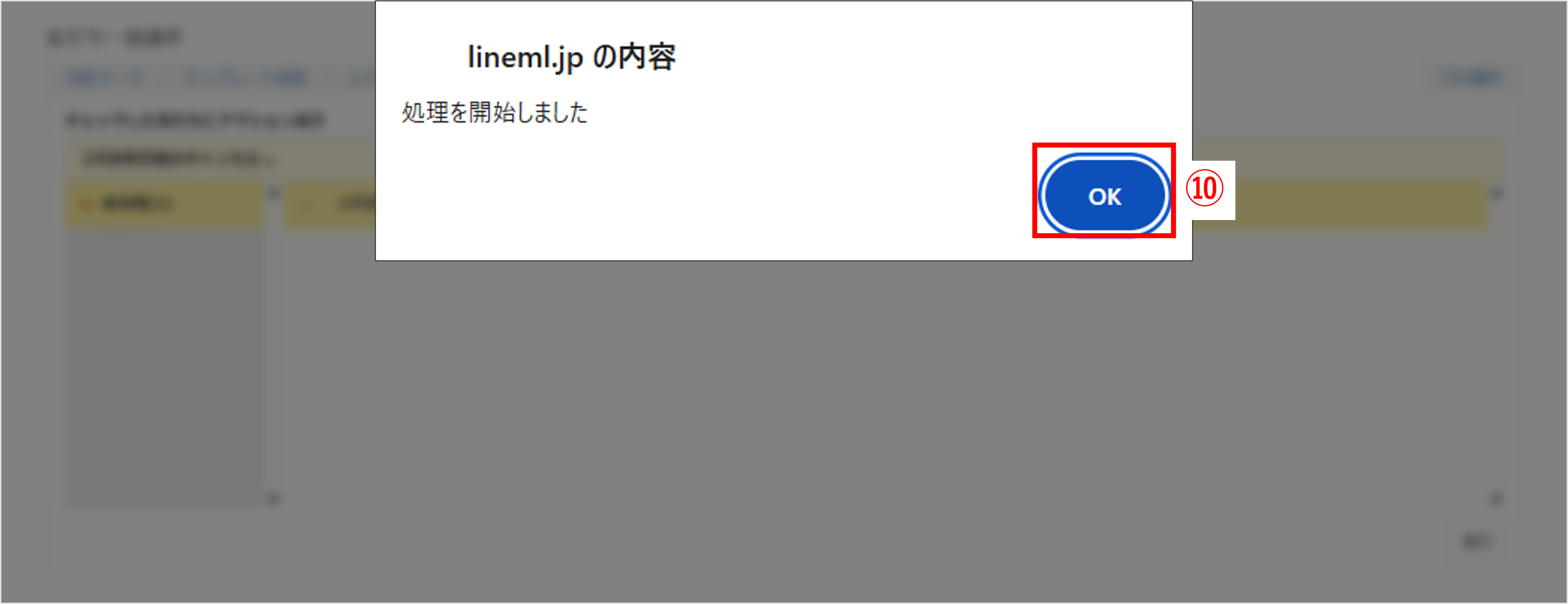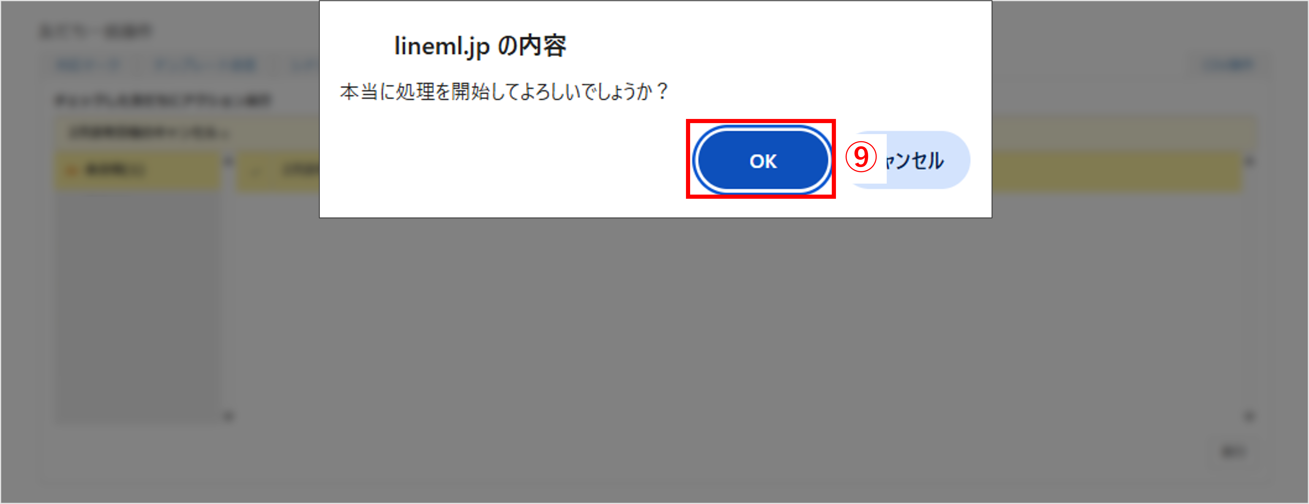 ⑨ポップアップメッセージが表示されます。内容を確認し、問題なければ〔OK〕ボタンをクリックします。