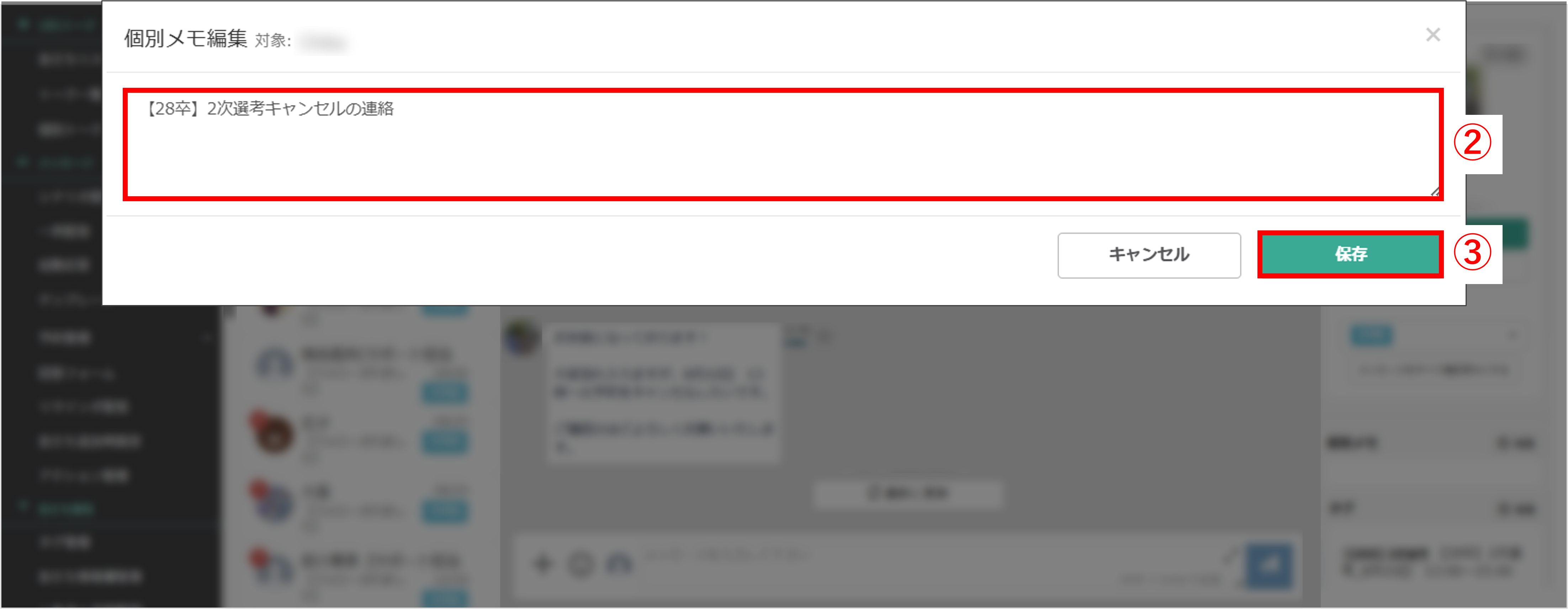 ③個別メモに残した内容を入力し、キャンセル操作の対象者を絞り込みます。