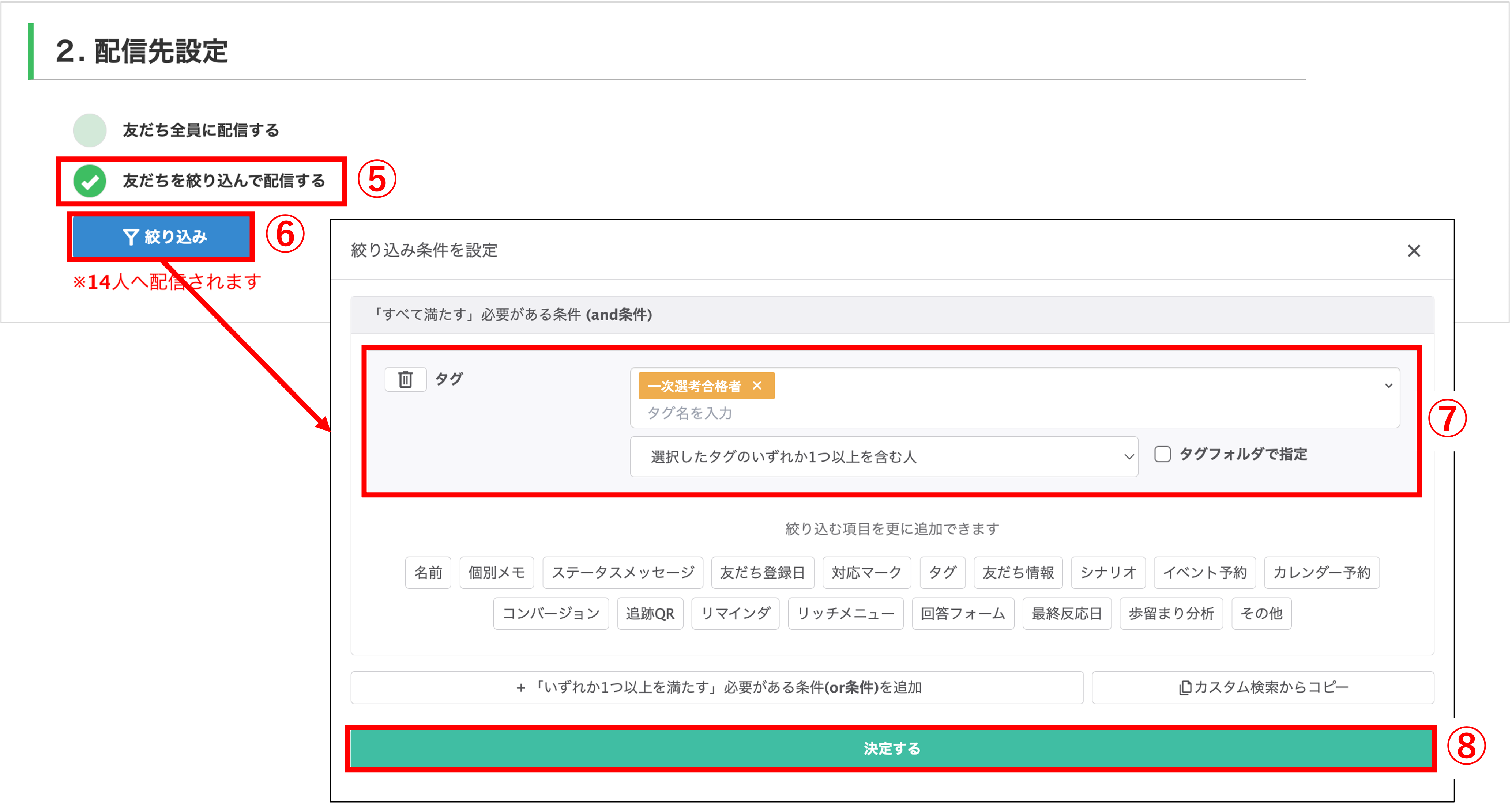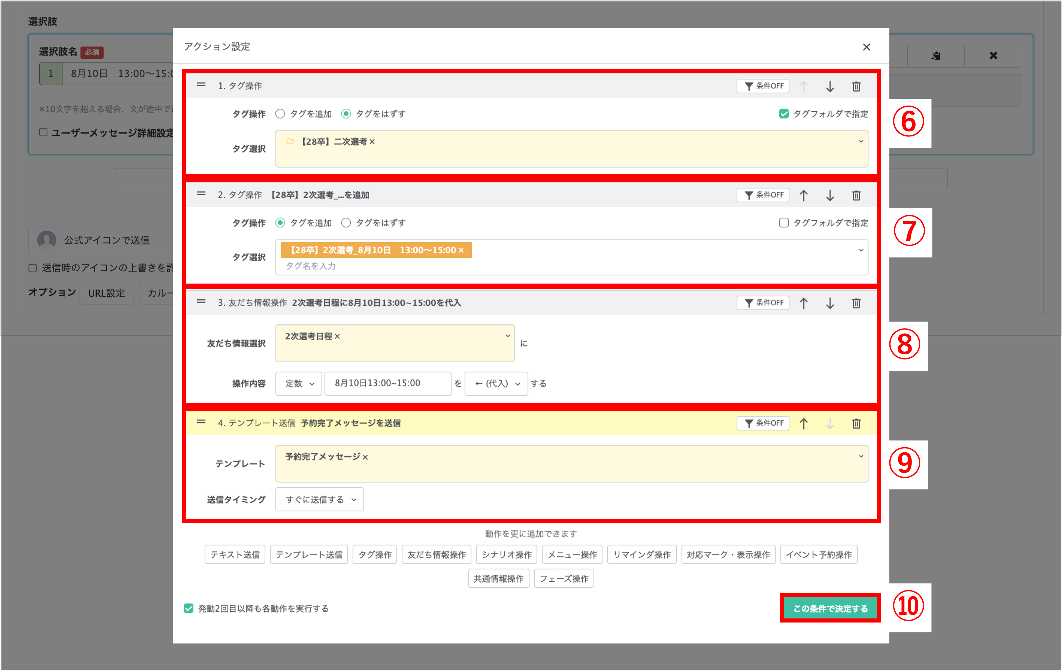 ⑦『タグ操作』をクリックし、選択肢と同じ日程の【タグを追加する】設定にします。