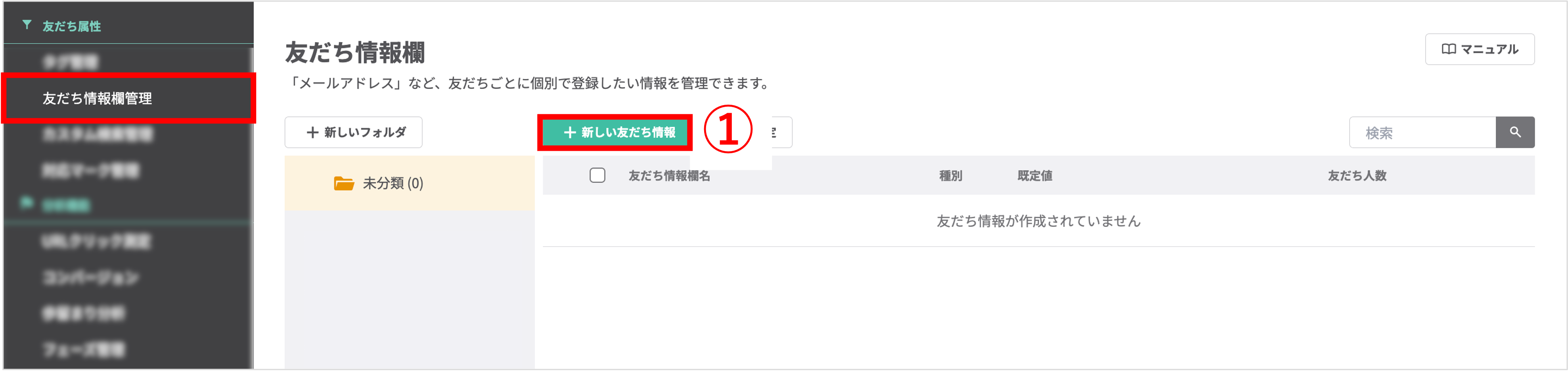 ①〔+新しい友だち情報欄〕ボタンをクリックします。