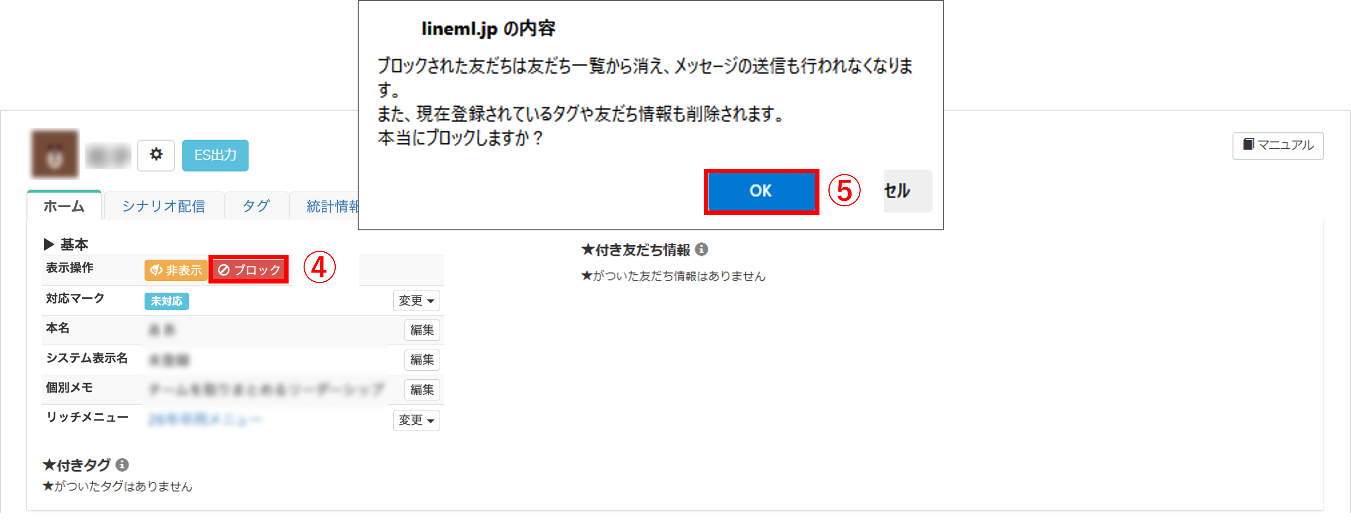 また、現在登録されているタグや友だち情報などが削除されます。一度削除されると復元できないため、あらかじめご了承ください。
