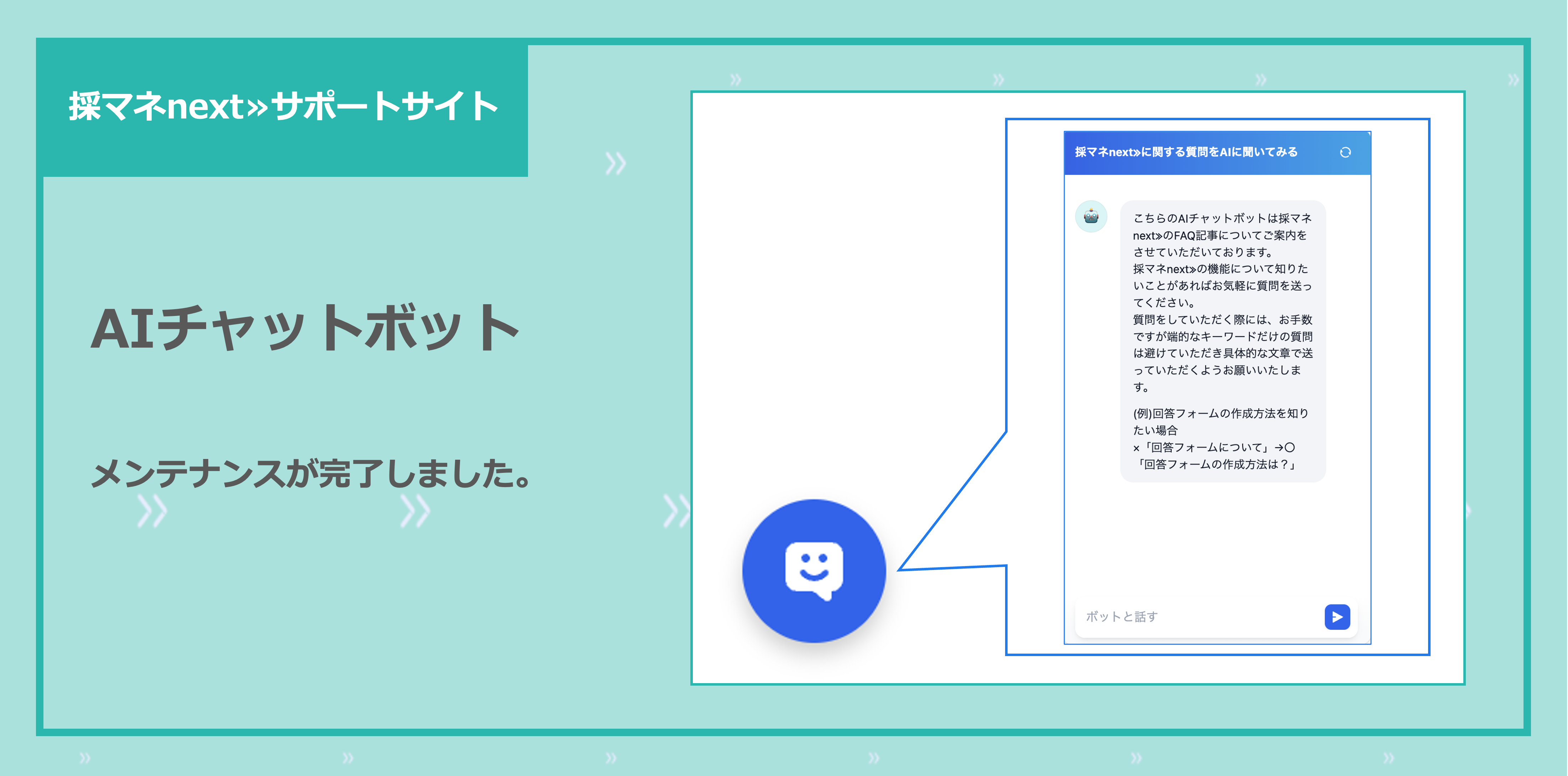 AIチャットボットのメンテナンスが完了しました – 採マネnext≫サポートサイト
