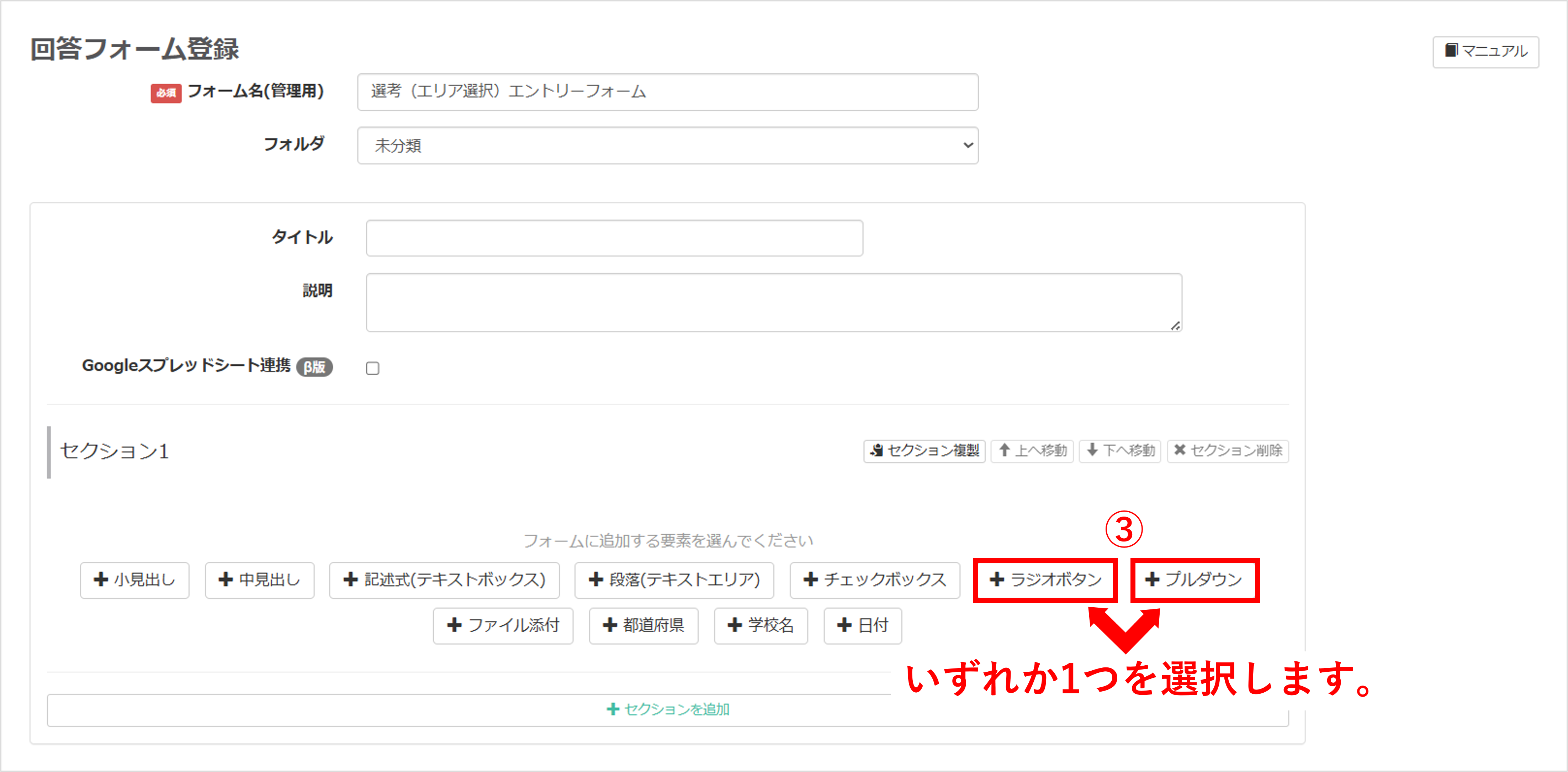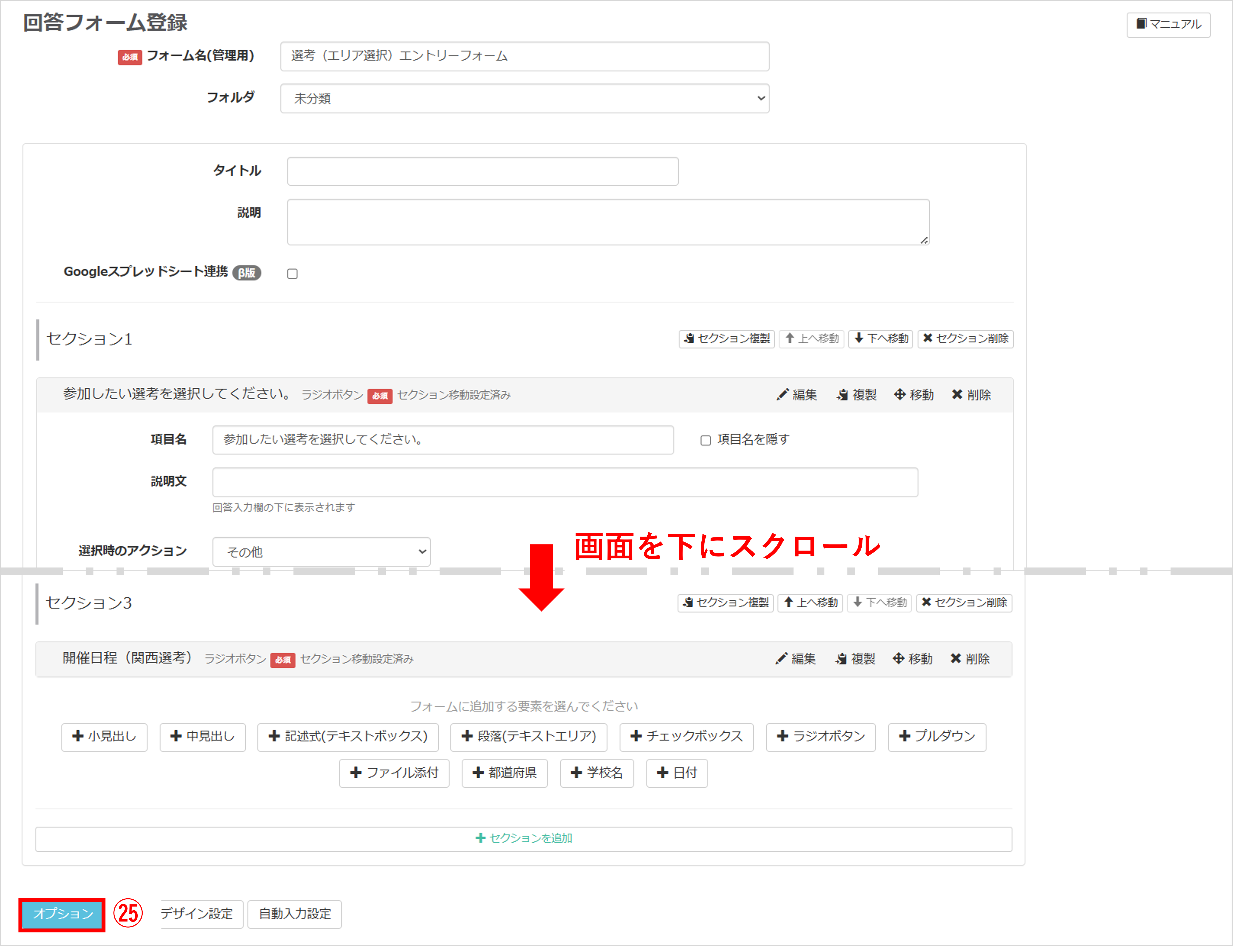 ★すでに作成した質問を別のセクションに移動できます。フォームの構成を変更したい場合に便利です。